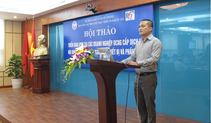 Ông Nguyễn Trường Thành - đại diện Trung tâm Internet Việt Nam đã báo cáo về tình hình triển khai IPv6 của các doanh nghiệp