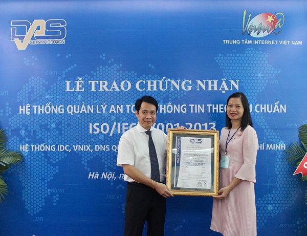 On 7th August, 2018, Viet Nam Internet Network Information Center (VNNIC) achieved ISO/IEC 27001:20013 certification within the scope of operation and management of essential network systems in Viet Nam including the national DNS .VN, the Internet eXchange system and Internet data centers (IDCs) in Hanoi Capital, Danang city and Ho Chi Minh City.