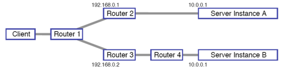 Router1 treats 10.0.0.1 as a single instance