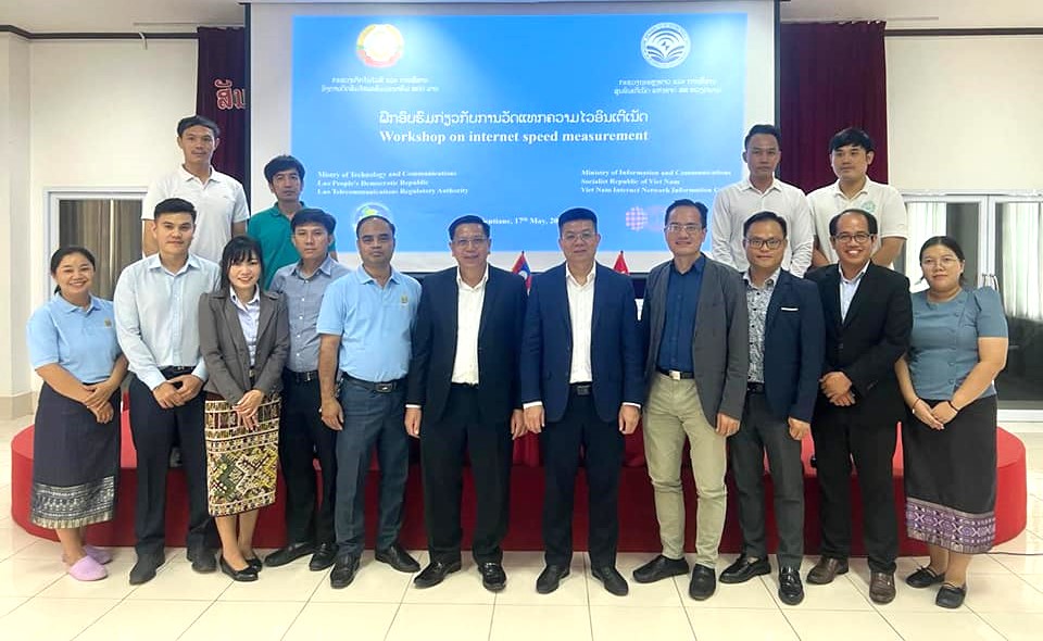 Implementing the bilateral memorandum of understanding (MoU) with the Laos National Internet Center (LANIC) and the Laos Telecommunications Regulatory Authority (LTRA), assisting LANIC, LTRA in managing, developing, and ensuring the safety and reliability of Internet resources, monitoring Internet resource activities, and measuring Internet access speed, from May 15th–17th, VNNIC initiated the bilateral work program in Vientiane, Laos.