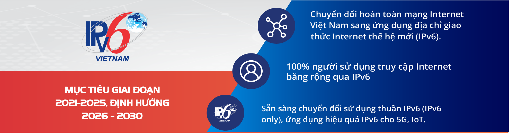 | Đóng góp lớn nhất cho tổng lưu lượng IPv6 Việt Nam; Chuyển đổi IPv6 cho mạng di động, cố định, các dịch vụ khác. Tỷ lệ IPv6 đạt 50% FTTH, 84% Mobile | Tiên phong triển khai IPv6 cho di động (năm 2018); duy trì tăng trưởng, chuyển đổi IPv6 cho mạng di động và FTTH, các dịch vụ khác. Tỷ lệ IPv6 đạt 46% FTTH, 85% Mobile | Tiên phong triển khai IPv6 quy mô lớn đầu tiên tại Việt Nam, cung cấp IPv6 cho dịch vụ FTTH (năm 2016); duy trì tăng trưởng, chuyển đổi IPv6 cho mạng FTTH. Đã triển khai IPv6 only. Tỷ lệ IPv6 đạt 58% FTTH. | Chuyển đổi IPv6 toàn diện, ổn định cho mạng di động. Là doanh nghiệp Việt Nam đạt tỷ lệ IPv6 chung toàn mạng đạt 80%, tiệm cận tỷ lệ IPv6 di động của các doanh nghiệp lớn trên thế giới; Đã triển khai IPv6 only, đạt tỷ lệ 90% IPv6 Mobile. |
