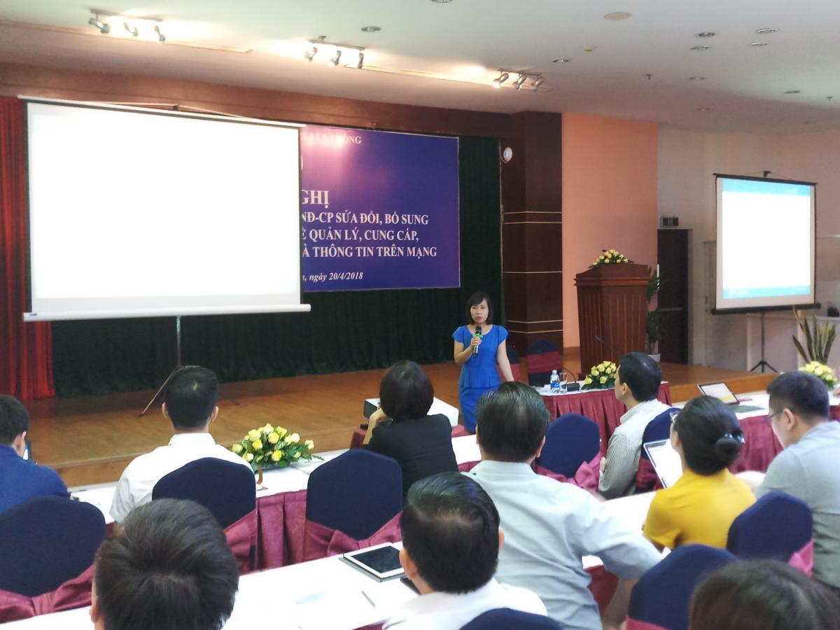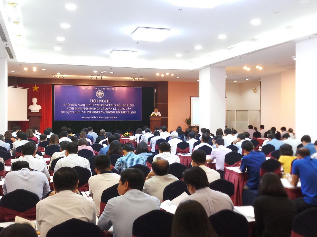 Nhằm phổ biến kịp thời và giải đáp các quy định mới của pháp luật về quản lý, cung cấp, sử dụng dịch vụ Internet và thông tin trên mạng cho các cơ quan, đơn vị, doanh nghiệp, cá nhân, ngày 20/4/2018 Bộ Thông tin và Truyền thông (Bộ TT&TT) tổ chức Hội nghị phổ biến Nghị định số 27/2018/NĐ-CP sửa đổi, bổ sung một số điều của Nghị định số 72/2013/NĐ-CP ngày 15 tháng 7 năm 2013 của Chính phủ về quản lý, cung cấp, sử dụng dịch vụ Internet và thông tin trên mạng. Tham dự Hội nghị có đại diện các đơn vị thuộc Bộ TT&TT, các Sở Thông tin và Truyền thông, các tổ chức doanh nghiệp hoạt động trong lĩnh vực CNTT và thông tin điện tử, các Nhà đăng ký tên miền…