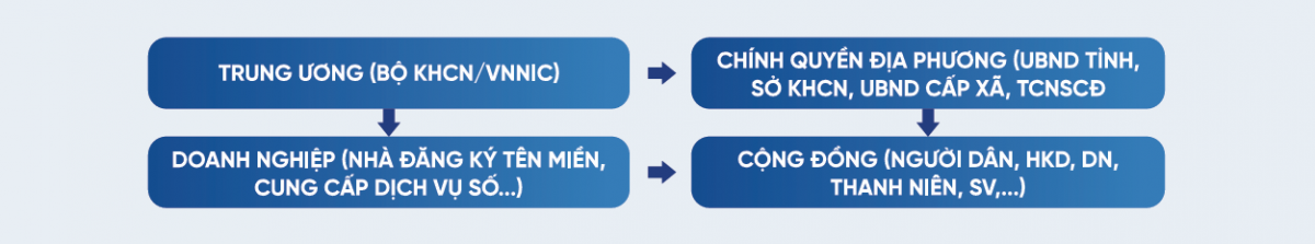 Để làm được điều này, Trung tâm Internet Việt Nam (VNNIC) với vai trò định hướng, triển khai cách làm đổi mới, sáng tạo với mô hình 04 Nhà gồm Nhà nước - Chính quyền địa phương - Doanh nghiệp - Cộng đồng, đảm bảo việc điều phối, giám sát tiến độ bằng công cụ số xuyên suốt, minh bạch, giúp triển khai nhanh, đúng trọng tâm và bền vững.