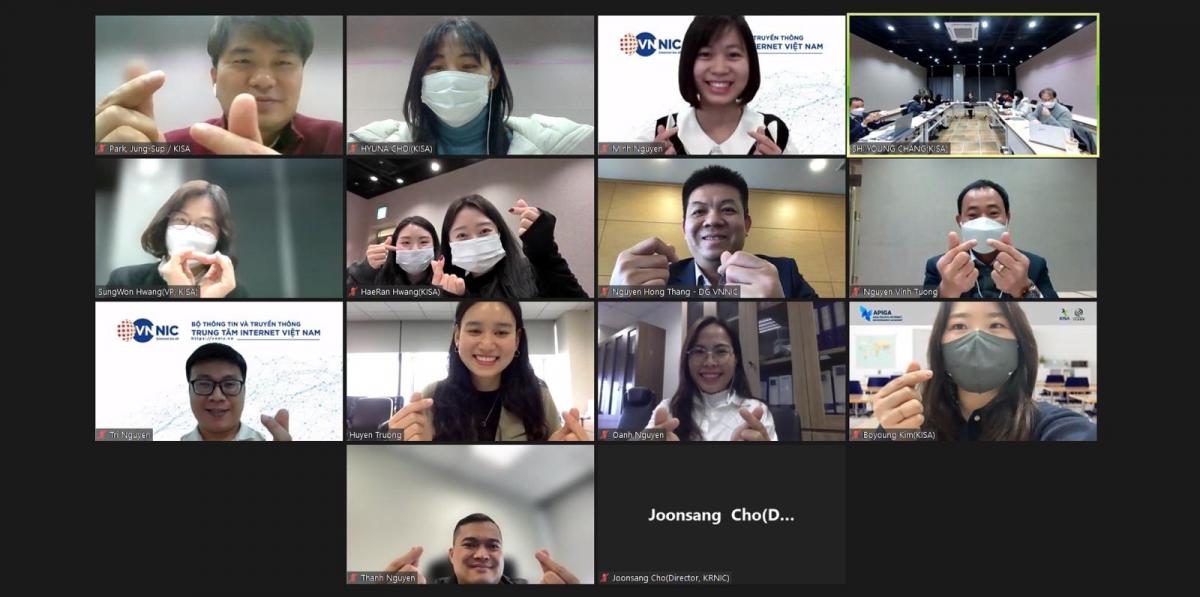 Cuộc họp trực tuyến giữa VNNIC và KISA ngày 27-28/12/2021