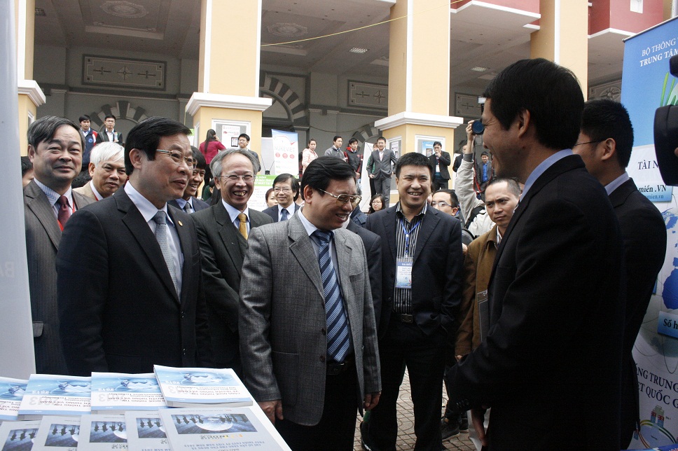 Các đồng chí Nguyễn Bắc Son - Ủy viên Ban chấp hành Trung ương Đảng, Bộ trưởng Bộ TT&TT, Nguyễn Đình Phách - Ủy viên Ban chấp hành Trung ương Đảng, Bí thư Tỉnh ủy Thái Nguyên tham quan gian hàng của VNNIC.