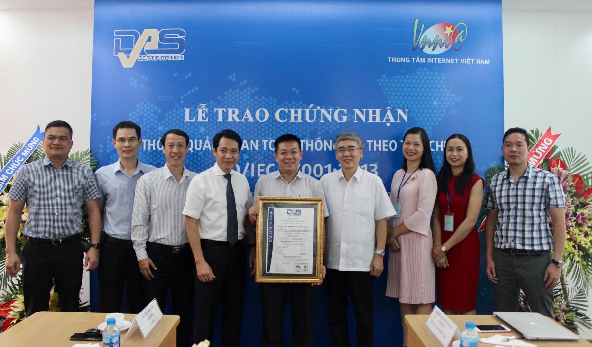 Từ tháng 6/2015, hệ thống quản lý an toàn thông tin trong công tác quản lý hệ thống máy chủ tên miền quốc gia .VN và hệ thống tại Hà Nội của VNNIC cũng đã được tổ chức DAS chứng nhận đạt chuẩn ISO/IEC 27001:2013 với thời hạn 3 năm (6/2015-6/2018). Việc áp dụng ISO 27001 tại VNNIC được thực hiện chặt chẽ, hiệu quả đảm bảo hoạt động an toàn ổn định của hệ thống DNS quốc gia trong suốt 18 năm liên tục không có bất kỳ 1 sự cố gián đoạn dịch vụ nào, việc truy cập tên miền quốc gia .VN được thông suốt, góp phần đảm bảo hoạt động an toàn của mạng Internet Việt Nam.