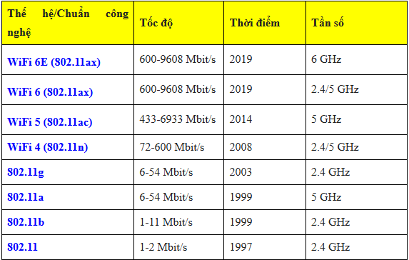 WiFi 6: Là chuẩn mạng không dây mới cho tốc độ gần 10Gbps, các kỹ thuật mới được áp dụng giúp tốc độ cao hơn, độ trễ thấp hơn, bảo mật tốt hơn và phủ sóng rộng hơn.