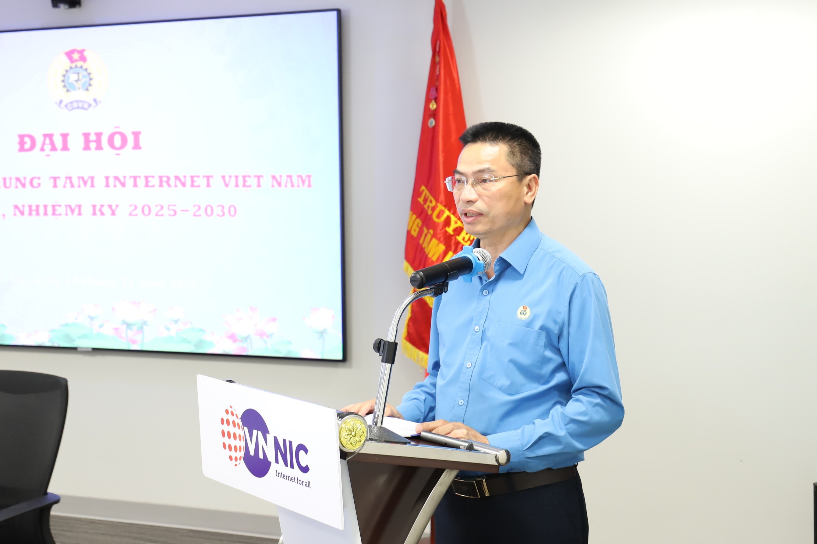 Căn cứ Điều lệ Công đoàn Việt Nam, Hướng dẫn thi hành Điều lệ Công đoàn Việt Nam và Kế hoạch số 262/KH-CĐKHCN ngày 12/9/2025 của Công đoàn Khoa học và Công nghệ Việt Nam về việc tổ chức Đại hội Công đoàn các cấp tiến tới Đại hội I Công đoàn KHCN Việt Nam, nhiệm kỳ 2025–2030; cùng Kế hoạch số 90/KH-CĐVNNIC ngày 24/10/2025 của Ban Chấp hành Công đoàn Trung tâm Internet Việt Nam về việc tổ chức Đại hội Công đoàn Trung tâm Internet Việt Nam khóa I, nhiệm kỳ 2025–2030, Ban Chấp hành Công đoàn VNNIC long trọng tổ chức Đại hội Công đoàn Trung tâm Internet Việt Nam khóa I, nhiệm kỳ 2025–2030 từ 13h30, ngày 14 tháng 11 năm 2025 (Thứ Sáu) tại trụ sở Tòa nhà VNTA.