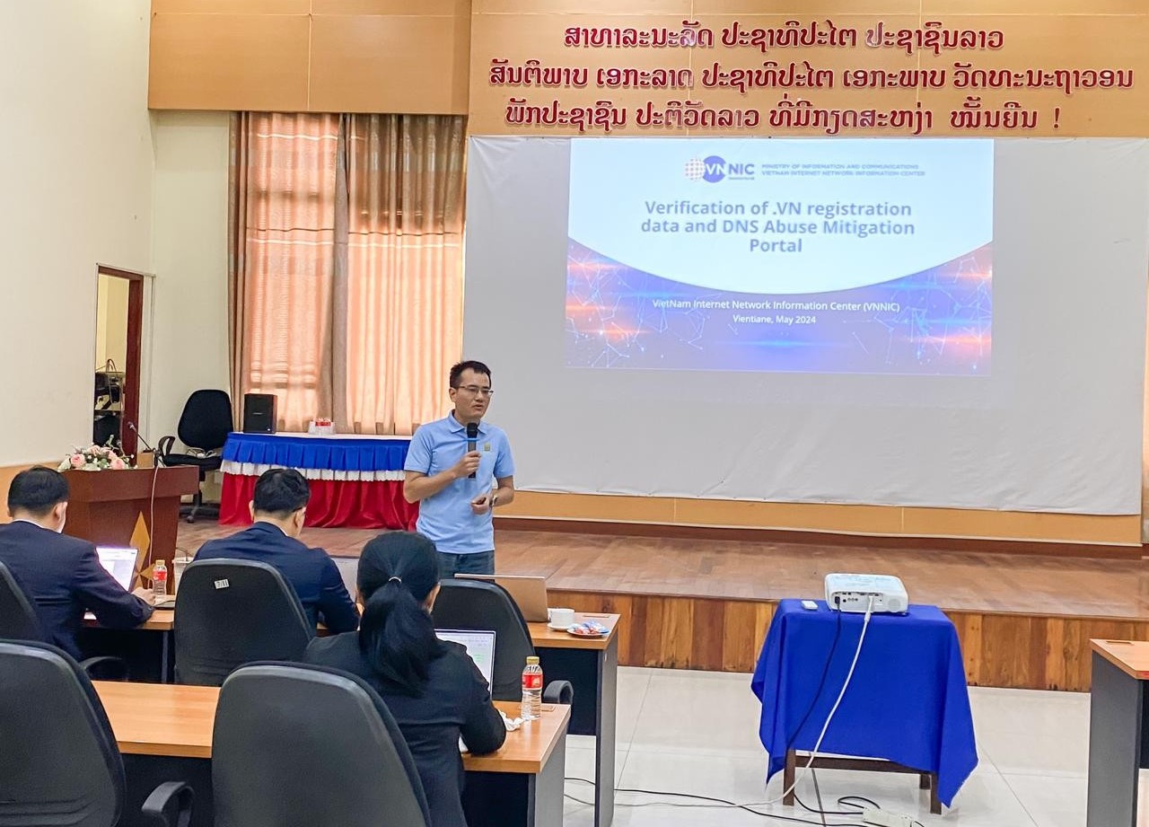 Within the framework of cooperation with LANIC, VNNIC carried out a consulting program on policies, management models, and strategy for the development of the Laos national domain name ".la", held a Workshop on National Important Internet Infrastructure Security, focusing on ensuring the security of the Registry system and technical solutions to improve the reliability of the country code top-level domain name. Within the framework of cooperation with LTRA, VNNIC carried out a program to help with technology and the roadmap to develop an Internet speed measurement system in Laos, held a Workshop on Technology, operation, statistics and analysis of Internet speed data.