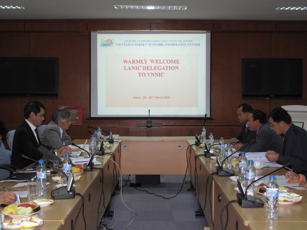 Ngày 25 và 26/03/2010, tại Trụ sở Trung tâm Internet Việt Nam (VNNIC), Hà Nội, đoàn công tác của Ủy ban Internet Quốc gia Lào (LANIC) do ông Khamkhith Saisongkham - thành viên Ban điều hành LANIC (Board member) kiêm Phó Chánh văn phòng - dẫn đầu đã sang thăm và làm việc chính thức với VNNIC.