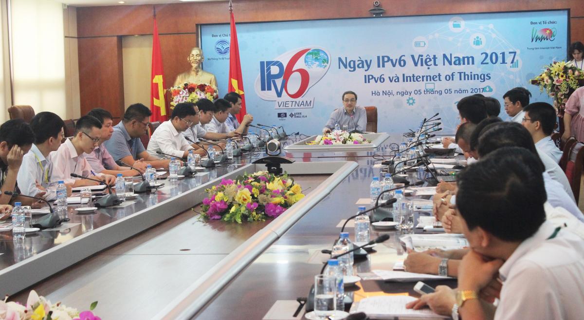 Sáng ngày 05/05/2017 tại trụ sở Bộ Thông tin và Truyền thông - Ban Công tác thúc đẩy phát triển IPv6 Quốc gia tổ chức Hội thảo “ IPv6 và Internet of Things” nhân sự kiện ngày IPv6 Việt Nam. Tham dự hội thảo có Ông Phan Tâm - Thứ trưởng Bộ Thông tin và Truyền thông – Trưởng Ban Công tác thúc đẩy phát triển IPv6 Quốc gia, các thành viên Ban Công tác thúc đẩy phát triển IPv6 Quốc gia; các cơ quan quản lý về CNTT của một số Bộ, ngành; các doanh nghiệp cung cấp dịch vụ Internet, các nhà sản xuất thiết bị, nội dung... và đông đảo các cơ quan thông tấn báo chí cũng đến tham dự và đưa tin.