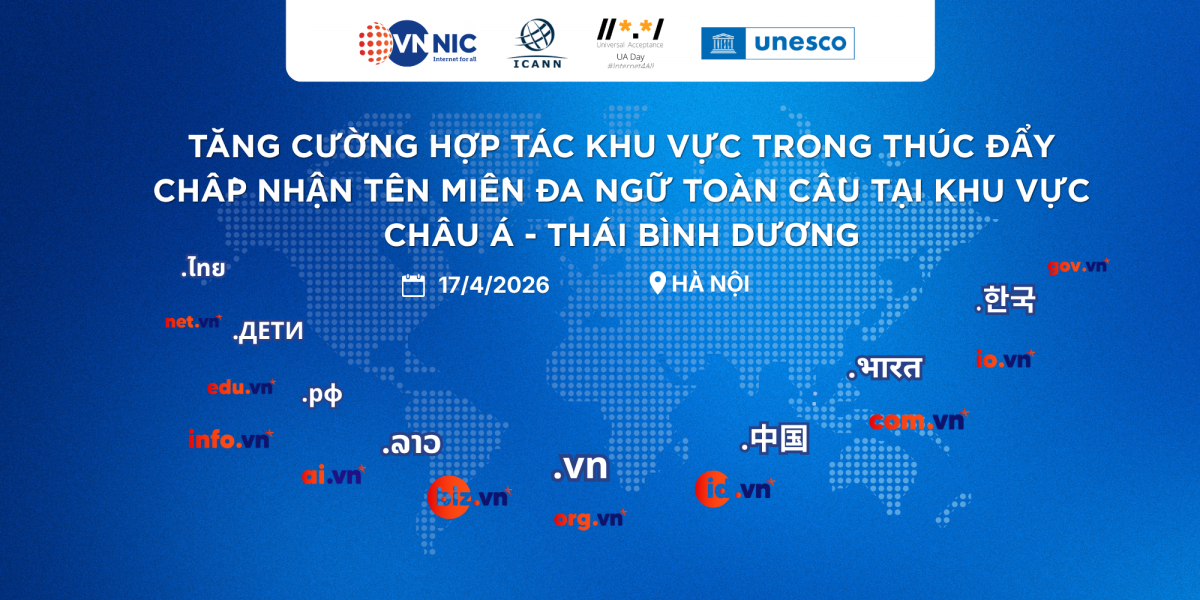 Trung tâm Internet Việt Nam (VNNIC), phối hợp cùng Tổ chức Quản lý tên miền và số quốc tế ICANN và UNESCO đăng cai tổ chức Hội thảo UA Day 2026 khu vực Châu Á – Thái Bình Dương – sự kiện chuyên đề quan trọng nhằm thúc đẩy Chấp nhận phổ quát (Universal Acceptance – UA) đối với tên miền và email đa ngữ trong toàn khu vực.