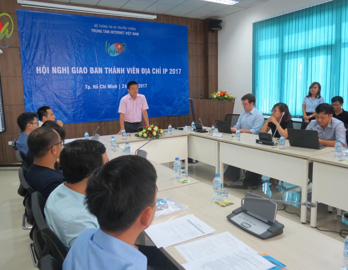 Ngày 24/8/2017, tại thành phố Hồ Chí Minh, Trung tâm Internet Việt Nam (VNNIC) tổ chức Hội nghị Giao ban thành viên địa chỉ năm 2017, qua hệ thống tele-conference tại hai đầu TP Hà Nội và Đà Nẵng với sự tham gia của đại diện của các thành viên địa chỉ tại Việt Nam. Năm nay, Hội nghị có sự tham gia của Đại diện của Tổ chức quản lý địa chỉ khu vực Châu Á – Thái Bình Dương (APNIC) tạo cơ hội trao đổi giữa thành viên địa chỉ tại Việt Nam với các chuyên gia quốc tế và VNNIC.