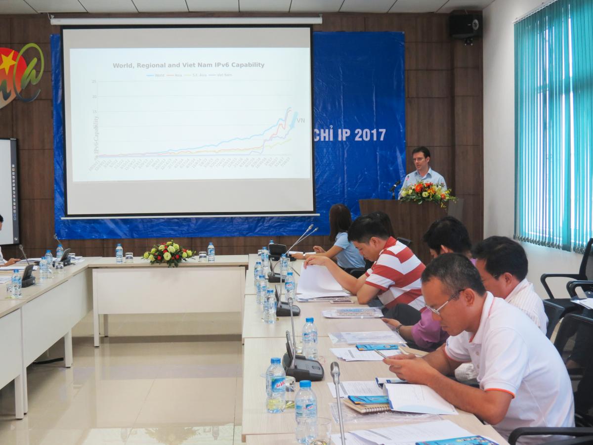Đối với vấn đề triển khai IPv6, Hội nghị đã được cập nhật hiện trạng mới nhất đối với kết quả triển khai IPv6 của Việt Nam do đại diện đến từ VNNIC và APNIC cùng chia sẻ. Mặc dù, chuyển nhượng IPv4 vẫn duy trì trong khu vực; Việt Nam cũng hỗ trợ nhận tài nguyên IPv4 về Việt Nam, tuy nhiên số lượng địa chỉ chuyển nhượng của khu vực ngày càng giảm. Xu hướng hiện tại là công tác chuyển đổi IPv6 vời nhiều doanh nghiệp tham gia với tốc độ tăng trưởng gấp 2-5 lần/năm.