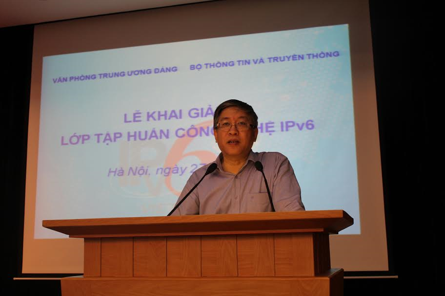Phát biểu tại lễ khai giảng khóa tập huấn, Ông Lê Nam Thắng - Thứ trưởng Bộ Thông tin và Truyền thông - Trưởng ban Công tác thúc đẩy phát triển quốc gia IPv6 cho biết, trước thách thức về sự cạn kiệt địa chỉ IPv4 trên toàn cầu, ngay từ sớm, ngày 6/5/2008, Bộ TT&TT đã ban hành chỉ thị về thúc đẩy sử dụng địa chỉ Internet công nghệ IPv6. Tiếp đó, năm 2009, Ban công tác thúc đẩy IPv6 được thành lập, đồng thời đã xây dựng chương trình kế hoạch chuẩn bị tổ chức triển khai chuyển đổi IPv4/IPv6 tại Việt Nam. Theo Thứ trưởng, trong 4 năm qua (từ 2014- 2015), việc chuyển đổi đã được thực hiện thành công. Đặc biệt, các doanh nghiệp viễn thông, doanh nghiệp cung cấp dịch vụ nội dung đã thực hiện việc chuyển đổi rất mạnh. Về cơ bản, hạ tầng mạng lưới của các doanh nghiệp lớn như VNPT, Viettel, FPT đã sẵn sàng cho việc hỗ trợ công nghệ IPv6. Đồng thời, các nhà cung cấp dịch vụ nội dung, các trang mạng xã hội, các website cũng đã xây dựng kế hoạch chuyển đổi, đến năm 2016 sẽ hỗ trợ cho công nghệ IPv6. Thứ trưởng cũng cho biết thêm "về phía các cơ quan Đảng, Nhà nước, chúng tôi đánh giá rất cao việc Văn phòng Trung ương Đảng vừa ban hành kế hoạch thí điểm chuyển đổi từ IPv4/IPv6. Khóa tập huấn hôm nay được các đồng chí tổ chức để chuẩn bị cho việc triển khai kế hoạch. Đây cũng là một trong những cơ quan Đảng, Nhà nước đầu tiên, đi đầu trong việc chuyển đổi sang IPv6, ban hành được kế hoạch cũng như tổ chức được tập huấn, sẽ tạo điều kiện cho việc thúc đẩy chuyển đổi IPv4/IPv6 trên toàn quốc".