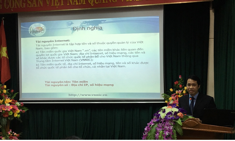 Ông Trần Minh Tân, Giám đốc Trung tâm Internet Việt Nam (VNNIC), phát biểu tại buổi lễ ký