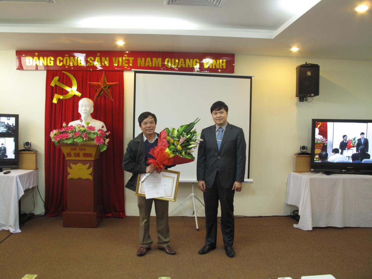 Ông Hoàng Minh Cường, Giám đốc VNNIC, trao giấy khen cho các Nhà đăng ký đạt thành tích trong việc phát triển tên miền .vn