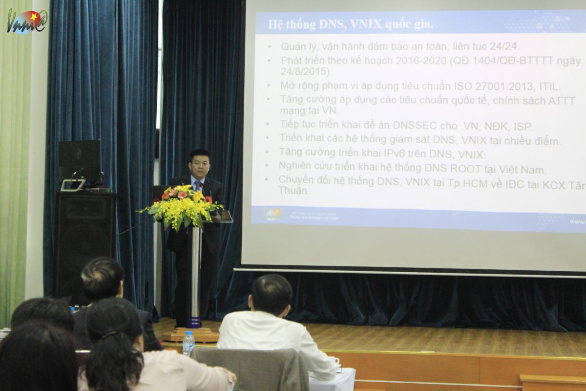 Về kế hoạch triển khai trong năm 2017, bên cạnh nhiệm vụ tiếp tục triển quản lý, vận hành và đánh giá chất lượng hệ thống DNS quốc gia, VNIX, công tác quản lý tên miền ".VN", VNNIC sẽ tập trung thực hiện các nhiệm vụ trọng tâm như sau: Triển khai quy hoạch hạ tầng kỹ thuật được phê duyệt theo Quyết định 1404/QĐ-BTTTT; phối hợp và đề nghị Bộ Tài chính hướng dẫn về chính sách thuế chuyển nhượng quyền sử dụng tên miền Internet để thực hiện giao dịch chuyển nhượng quyền sử dụng tên miền Internet được cấp không thông qua đấu giá theo Thông tư số 16/2016/TT-BTTTT; nghiên cứu dự thảo Nghị định để bảo vệ quyền và lợi ích của Việt Nam trước quá trình giải phóng tên miền mã quốc gia, tên quốc gia dưới tên miền New gTLD; thúc đẩy công tác thúc đẩy phát triển IPv6 năm 2017; triển khai chính sách phí, lệ phí tài nguyên Internet theo quy định tại Thông tư số 208/2016/TT-BTC; tổ chức thành công Hội thảo APRICOT, APTLD tại thành phố Hồ Chí Minh;...