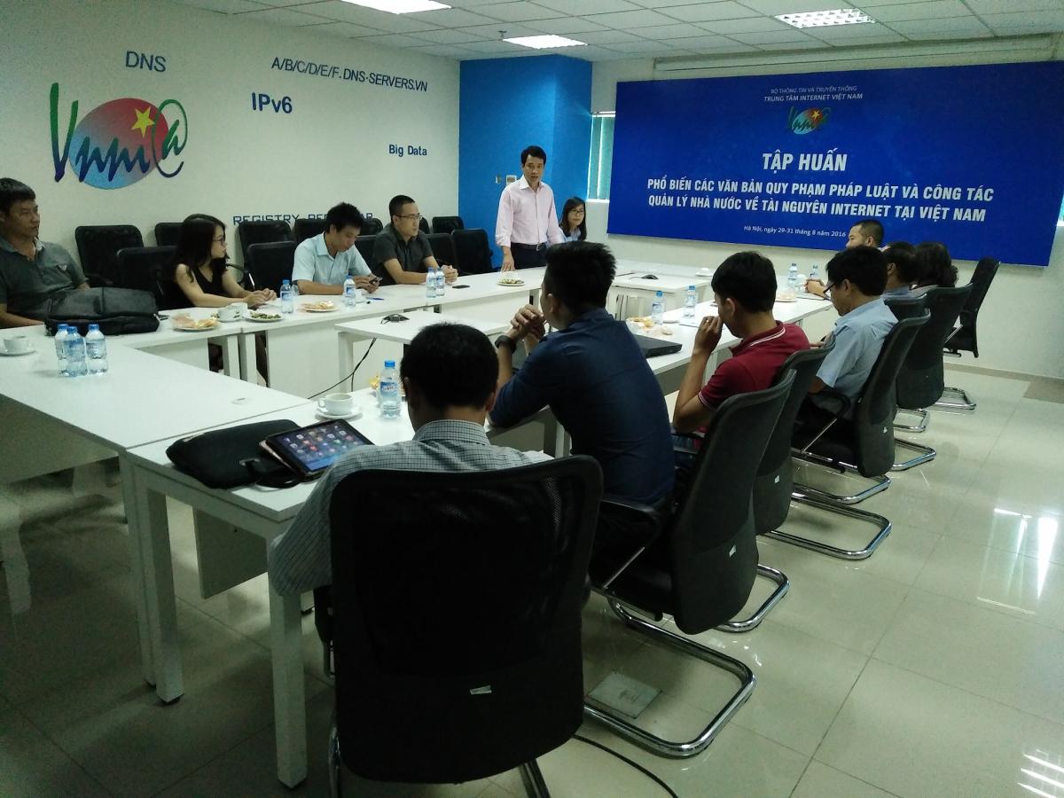 Nhằm đào tạo nâng cao các kiến thức, kỹ năng về quản lý và sử dụng tài nguyên Internet một cách hiệu quả, đúng quy định pháp luật, từ ngày 29/8/2016-31/8/2016 tại Hà Nội, Trung tâm Internet Việt Nam (VNNIC) đã tổ chức khóa tập huấn, phổ biến các văn bản quy phạm pháp luật về tài nguyên Internet cho các cán bộ của Sở TTTT tỉnh Quảng Ninh và Sở TTTT tỉnh Quảng Bình.